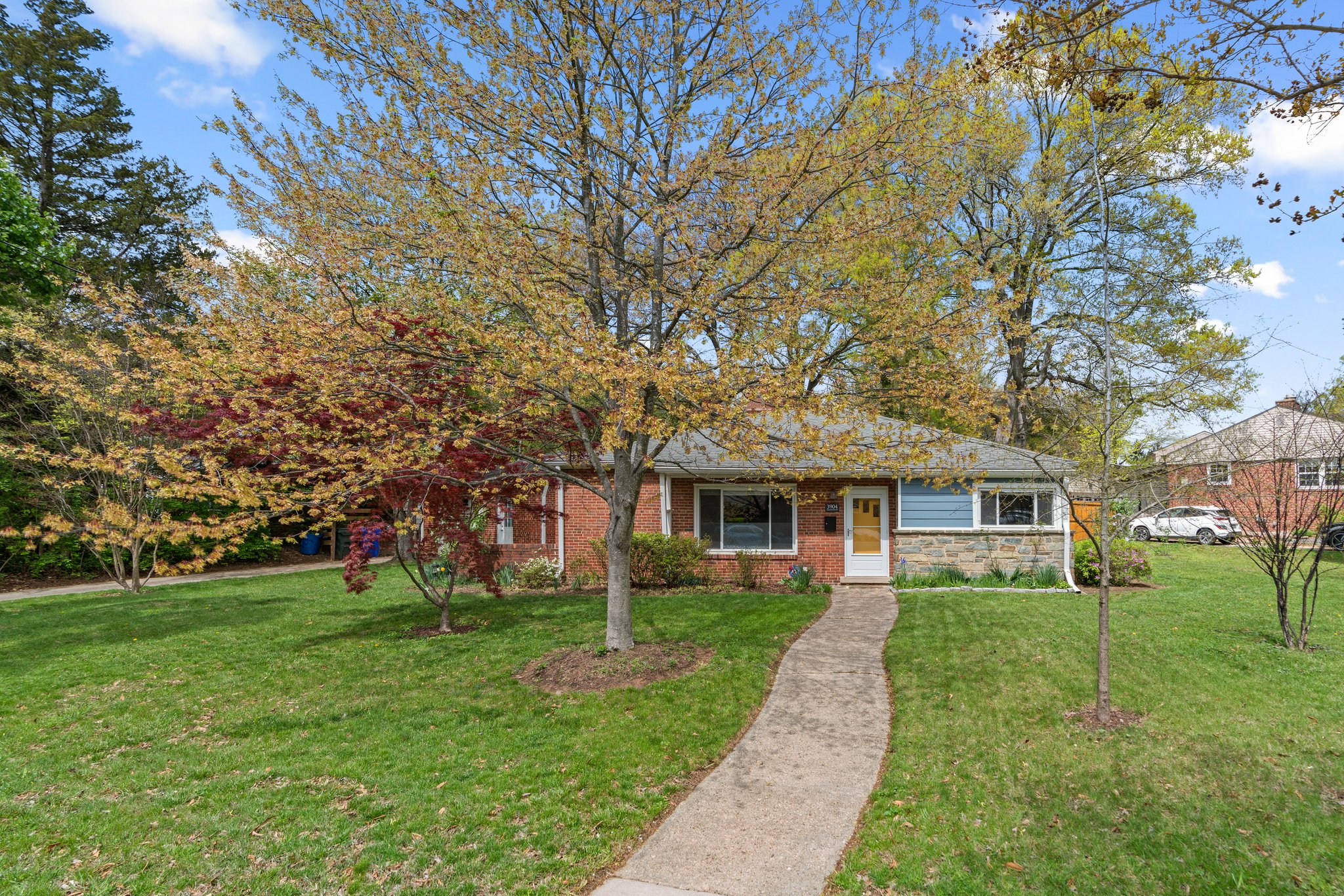 Much larger than it appears, this charming one-level brick Rambler sits on a beautifully landscaped corner lot in sought-after University Park. Ideal as a starter home or for those looking to downsize and age in place, this well-maintained residence offers comfort, convenience, and stylish updates throughout. Step into a cozy living room with beamed ceiling featuring a fireplace, built-in shelving and ample storage. The adjoining dining area provides access to a side patio and driveway, as well as the renovated kitchen - complete with stainless steel appliances, glass-front cabinetry, a breakfast bar, double sink, electric range and ceramic tile flooring, A utility room extension adds additional counter space and includes a wine refrigerator, perfect for entertaining. The rear mudroom offers front and back outdoor access and leads to a newly carpeted family room with a separate entrance - ideal for a home office, guest suite, or media room. A separate laundry room features a stackable washer/dryer, utility sink and built-in cabinetry, with direct access to the one-car, front-load garage. On and off street parking provide plenty of space for your guests. Enjoy spring blooms in the fully fenced backyard with patio with stone capped wall, flagstone walkway and storage shed. Additional features include central air, gas heat, six-panel doors, replacement windows, laminate flooring (over parquet) and window treatments throughout. This is a one-of-a-kind opportunity.
